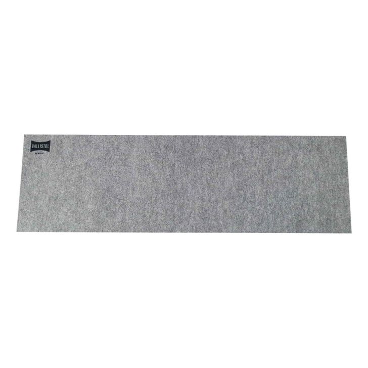 Ballistols vapenvårdsmatta är tillverkad av robust filt. Tack vare det mjuka materialet är den skonsam mot vapnets yta och har en halkfri beläggning på undersidan så att mattan ligger säker under rengöringen. När den inte används kan den vikas eller rullas ihop för att spara plats och förvaras tillsammans med dina rengöringstillbehör. Undermaterialet gör att den är halkfri och att ingen vätska eller pistololja kan rinna igenom den.